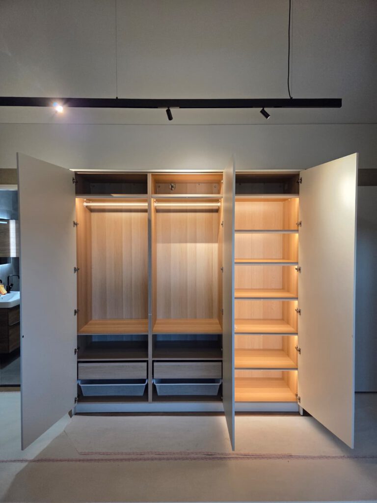 De verschillende kastdelen vormen samen één rustig en samenhangend ontwerp, afgewerkt met oog voor detail en hoogwaardige materialen.